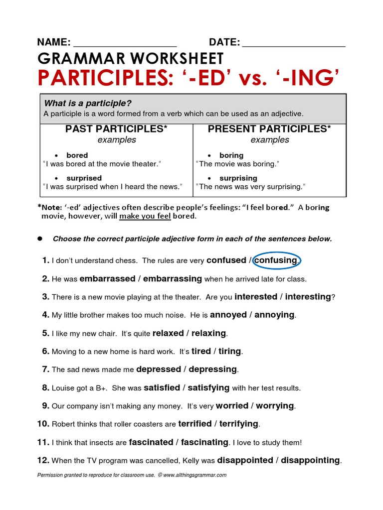 English Esl Adjectives With Ed Or Ing Worksheets Most Downloaded 141 Results Page 2